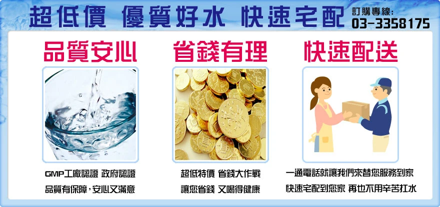 tag:台北礦泉水批發宅配,台北地區桶裝水批發宅配,桃園中壢礦泉水批發宅配,桃園八德礦泉水批發宅配,中壢飲用水桶裝水批發外送,中壢杯水批發宅配外送,南崁蘆竹礦泉水飲用水,新竹礦泉水批發宅配,訂購專線:03-3358175。